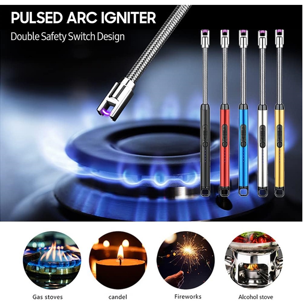 Mini encendedor resistente al viento, su tamaño es delgado y cuenta con un interruptor a prueba de niños en el botón de encendido/apagado. La cabeza suave larga y flexible te permite mantener una distancia segura de la llama.