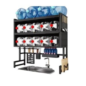Estante para fregadero: dimensiones 85 x 28 x 90 cm. El segundo nivel tiene capacidad para 28 tazones o 14 vasos y 11 platos. Verifique la altura del grifo y el ancho del fregadero antes de usarlo: la longitud del fregadero no debe exceder los 83 cm y la altura del grifo no debe exceder los 41 cm.