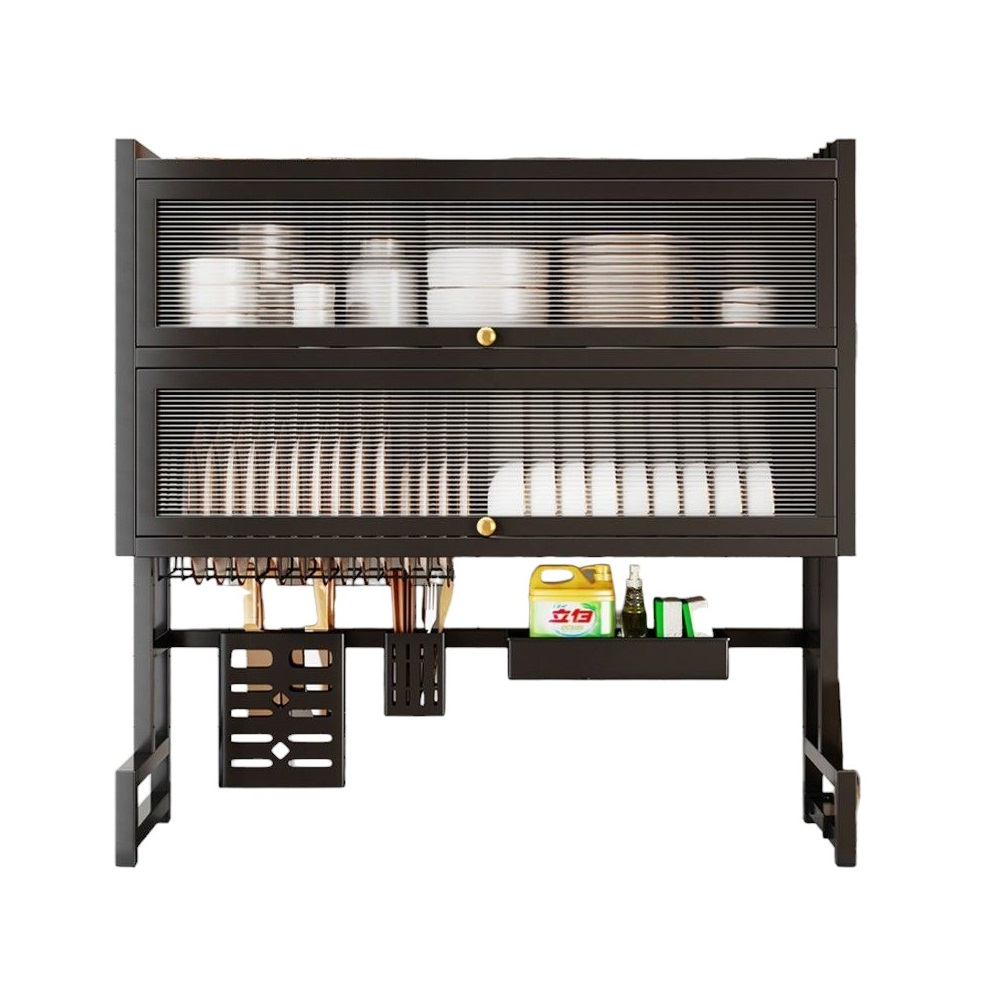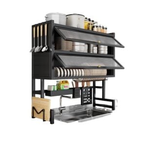 Escurridor con 2 tapas acrílica 2 niveles rack de acero inoxidable