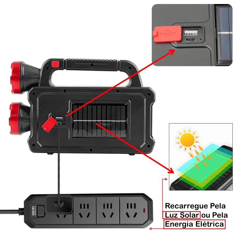 Linterna Solar Portátil 5 ritmos Foco de Luz Amarilla y Blanca