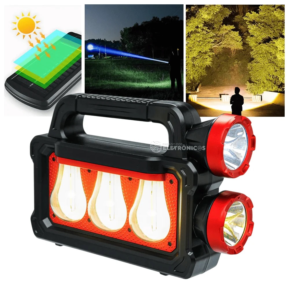 Linterna Solar Portátil 5 ritmos Foco de Luz Amarilla y Blanca