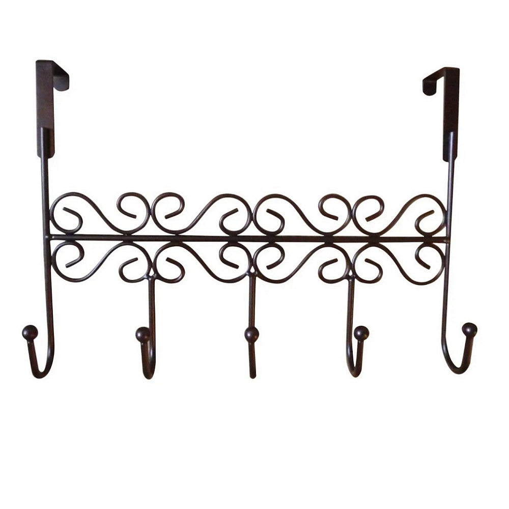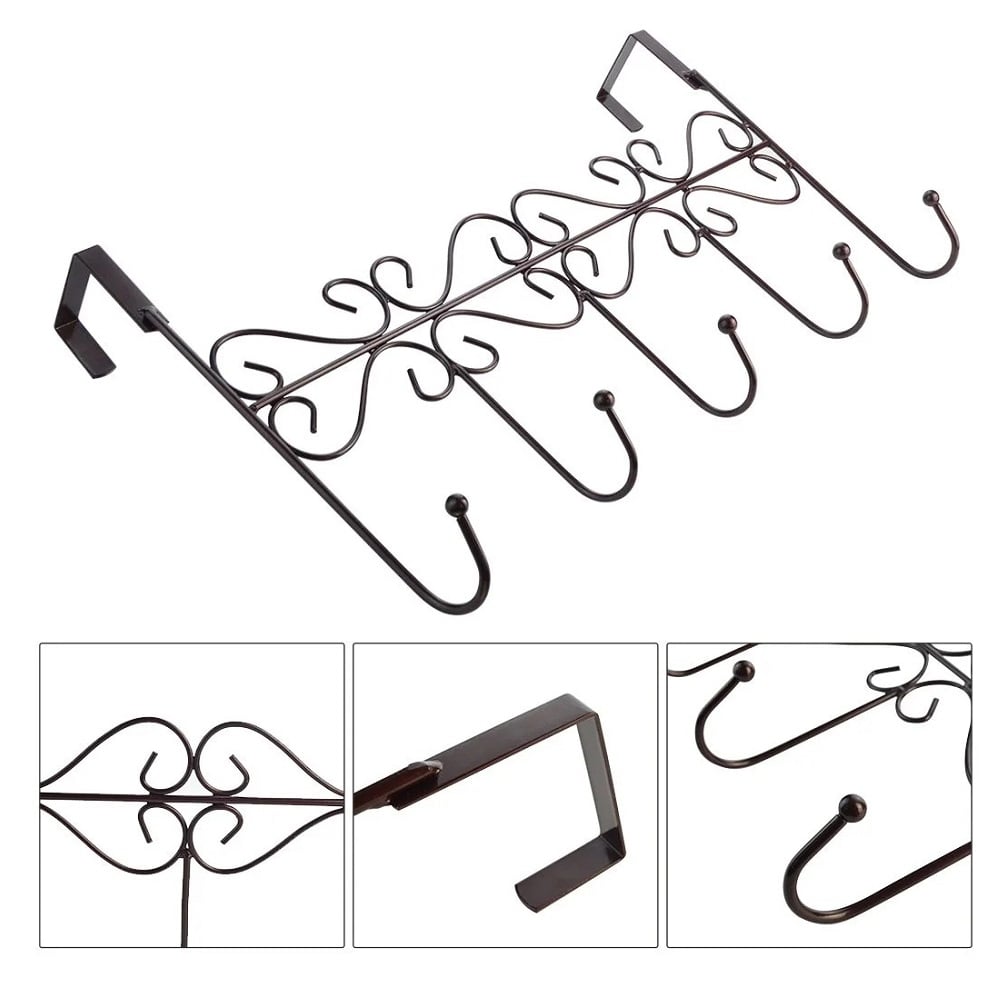 Perchero decorativo para 5 perchas sobre la puerta, soporte para perchas de metal para uso en el hogar y la oficina. Fije este hermoso perchero con gancho detrás de las puertas de su baño y dormitorio para tener acceso inmediato a su ropa. Perfecto para uso doméstico y de oficina.