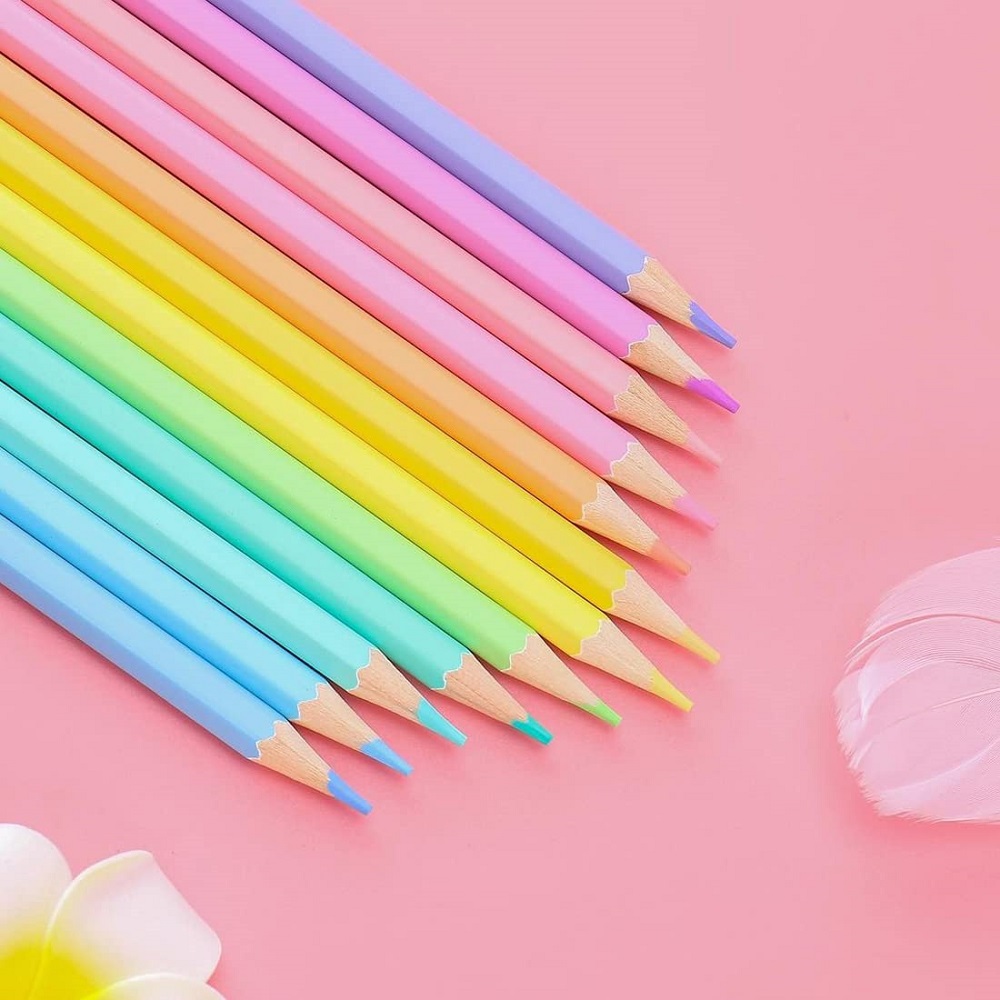 Lápices de colores pastel, perfectos para colorear los libros, usado tanto por niños y adultos que dibujen y pinten. Ideales para sombrear y bocetar, con la capacidad de crear profundidad y movimiento. Extra suaves y fáciles de difuminar.