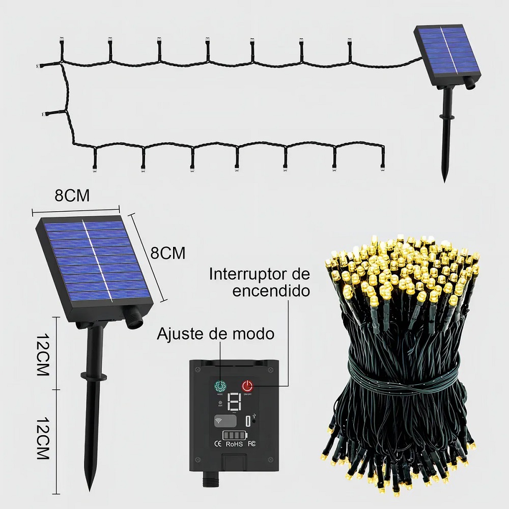 SL02-Tira de luces SOLAR 20 Metros 200L Ambar LED navideño